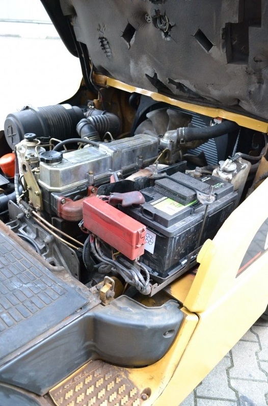 Дизелов мотокар Caterpillar DP30N 3000 kg Предлагаме втора употреба дизелов мотокар Caterpillar модел DP30N. Машината е произведена през 2004 година, на 7200 работни часа, в много добро функционално състояние. Мотокарът е оборудван с виличен изравнител. Товароподемност 3000 кг, работна височина 4 000 мм, височина на машината с прибрана мачта 2585 мм. Вилици 1500 мм, свободен ход 100 мм. Техническите характеристики са посочени в допълнителни данни.
