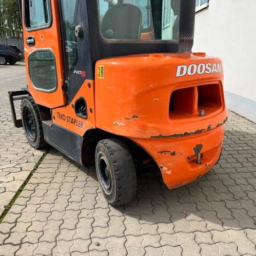 Предлагаме втора употреба дизелов мотокар Doosan модел D30S-5. Мотокарът е произведен през 2015 година, на 5 000 работни часа. Отлично техническо състояние. Товароподемност 5 000кг, работна височина 3 800 мм.