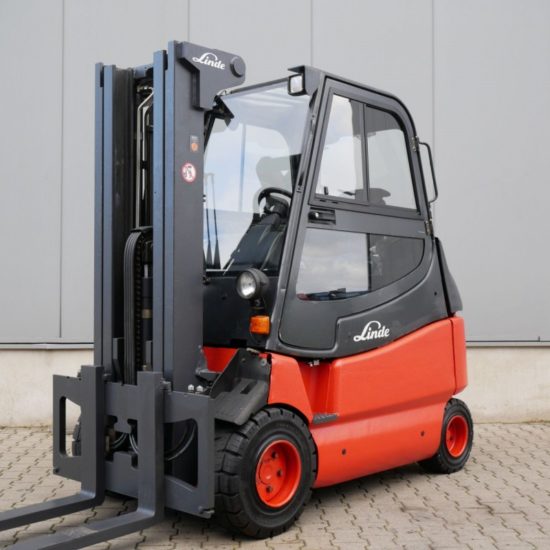 Електрокар Linde E 30 – 600 336-02 Предлагаме втора употреба 4-опорен електрокар Linde,E30-600, серия 387. Електрокарът е с товароподемност 3000 кг, работна височина 4705 мм, триплекс мачта. Машината е произведена през 2007 година, само на 8500 работни часа, в отлично техническо състояние. Електрокарът е оборудван с твърда кабина, липсва стъклото на дясната врата; 3-та и 4-та хидравлични линии, 2 операционни педала, фарове, работни светлини. Батерия 775 Ah със система за автоматично доливане, ново зарядно устройство. Височина на машината с прибрана мачта 2206 мм. Вилици стандартни 1200 мм. Техническите параметри са посочени в допълнителни данни.