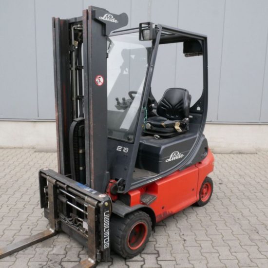 Електрокар Linde E18P 335-02 Предлагаме втора употреба електрокар Linde, модел E18P, серия 335-02. Машината е в отлично функционално състояние. Произведена е през 2004 година, на по-малко от 3500 моточаса. Товароподемност 1800 кг, работна височина 4470 мм, триплекс мачта. Оборудвана е с полу кабина -предно стъкло, горна предпазна решетка, виличен изравнител и позиционер Cascade. Вилици – стандартни 1200 мм. Височина на електрокара с прибрана мачта 2110 мм. Техническите характеристики са посочени в допълнителни данни.