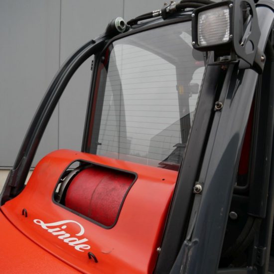 Мотокар газов Linde H35T 393 Предлагаме газов мотокар Linde, модел H30T, серия 393, втора употреба. Мотокарът е произведен през 2008 година, на 12 400 работни часа, в много добро състояние. Машината е с товароподемност 3500 кг, височина на повдигане 3550 мм, стандартна мачта. Мотокарът е оборудван с твърда кабина, 2 операционни педала, 3-та и 4-та хидравлични линии за прикачни устройства, вилици стандартни, фиксирана газова бутилка. LED работни светлини – 5 бр. Височина на машината с прибрана мачта 2414 мм. Техническите характеристики са посочени в допълнителна информация.