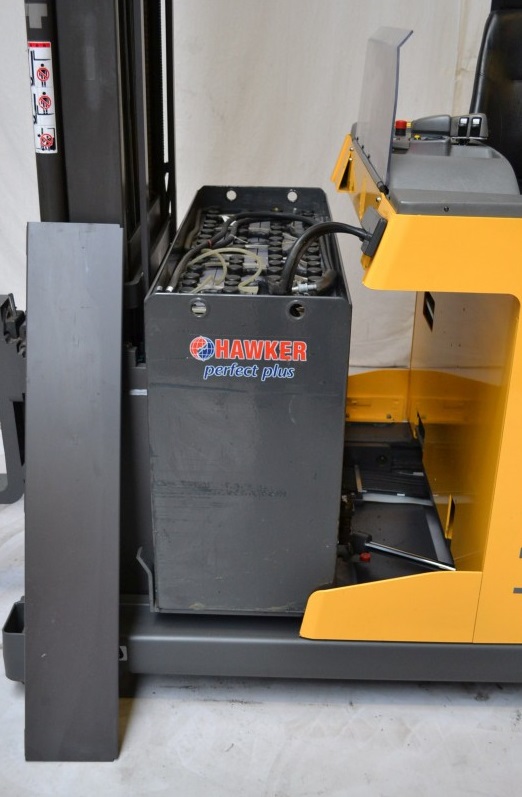 Рийчтрак Atlet 161 DTFVRF805UNS 1600 kg Предлагаме втора употреба електрически рийчтрак Atlet, модел 161 DTFVRF805UNS. Складовата машина е в отлично функционално състояние, произведена през 2009 година, само на 150 работни часа. Оборудвана е с мини волан, система за наблюдение с видео камера и монитор, вивличен изравнител. Батерия Hawker 48v. Товароподемност 1600 кг, височина на повдигане 8050 мм, триплекс мачта. Техническите параметри са посочени в допълнителни данни.
