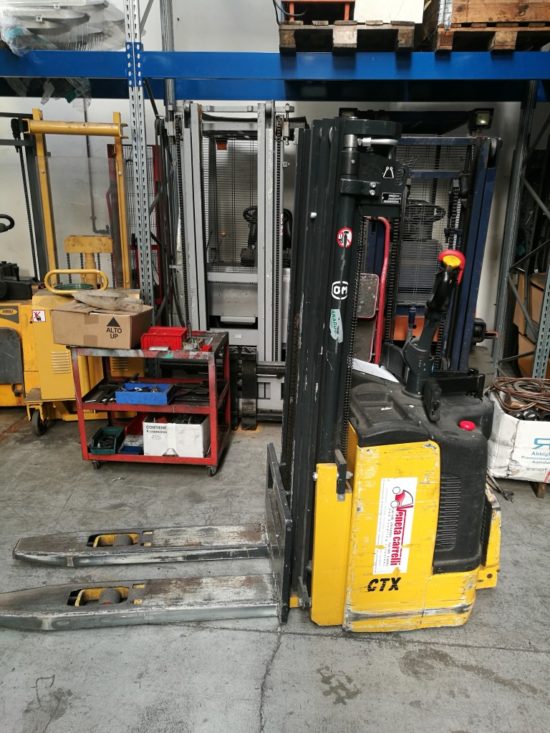 Електрически стакер OM 1400 kg Предлагаме електрически стакер, модел СТХ 14, втора употреба. Стакерът е в отлично функционално състояние, произведен през 2011 годдина, само на 1518 работни часа, рециклиран в Италия. Товароподемност 1400 кг, триплекс мачта с височина на повдигане 4250 мм. Складовата машина е предназначена за работа в складови площи на закрито. Стакерът е оборудван с платформа за водача. Техническите параметри са посочени в допълнителна информация.